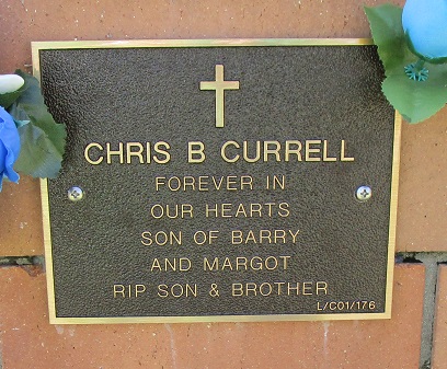 CHRIS B CURRELL Forever in our hearts. Son of Barry & Margot RIP Son & Brother. |